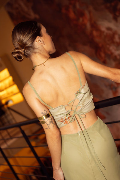 Top escote corazon y fruncido con espalda con tiras regulables.