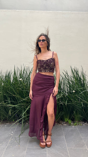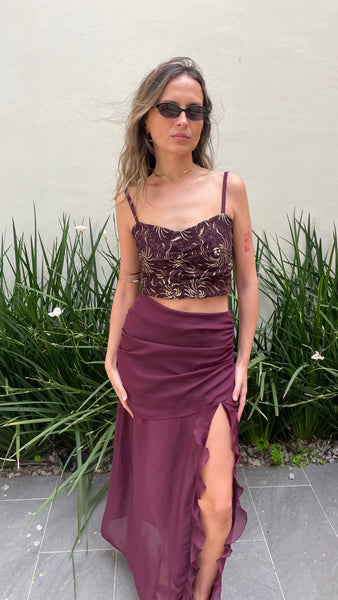 Top escote corazon y fruncido con espalda con tiras regulables.